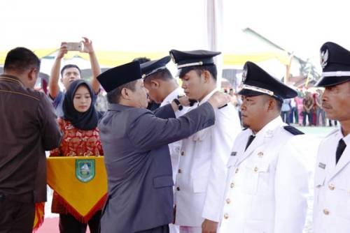 PINGGIR – Bupati Bengkalis, Amril Mukminin kembali melantik 6 kepala desa dari Kecamatan Bathin Solapan, Pinggir dan Talang Mandau di halaman Kantor Camat Pinggir, Kamis (20/12/2018).
