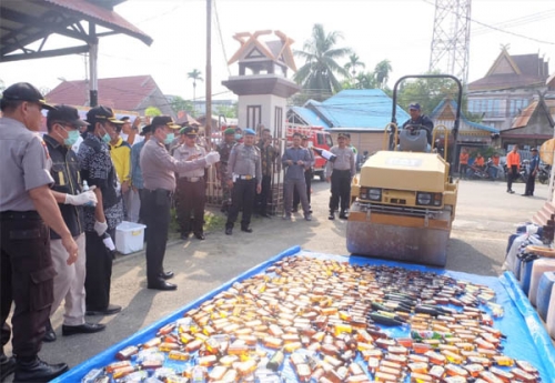 Pemusnahan yang di lakukan di halaman Mapolres Inhil itu, disaksikan oleh sejumlah pihak terkait, baik dari Pemkab, DPRD hingga Kejaksaan Negeri Inhil.