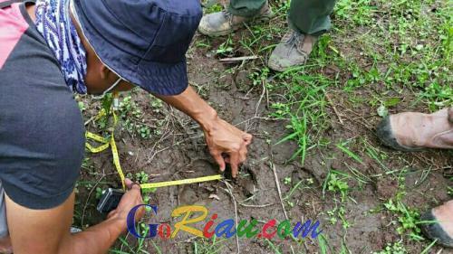 Tim gabungan dari personil Babinkamtibmas Polseksubsektor Pelalawan bersama Tim Balai Kinservasi Sumber Daya Alam (BKSDA) Riau serta masyarakat, melacak keberadaan harimau di Desa Kuala Tolam, Selasa (25/2/2020) kemarin.