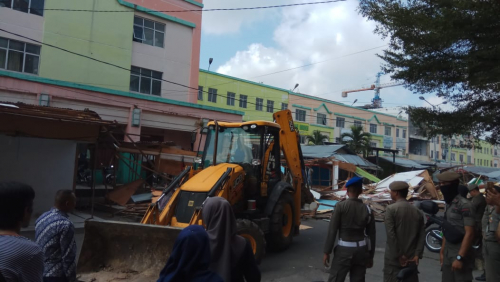 Kepala Satpol PP Kota Pekanbaru, Agus Pramono mengatakan, ada 500 personil gabungan yang dikerahkan, dibantu dengan dua alat berat excavator untuk merobohkan bangunan kios semi permanen tersebut.
