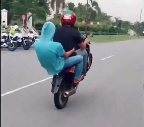 Dalam video viral tersebut, tampak dua orang remaja menggunakan sepeda motor beat warna merah, tidak ada nomor kendaraan, dan penumpang tidak menggunakan helm, melakukan aksinya.