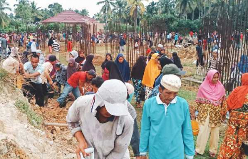 Mereka turun ke lapangan karena akan membangun mesjid besar dengan ukuran 40×40 meter persegi secara swadaya.