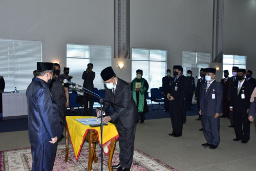 BENGKALIS–Sebanyak 29 pejabat struktural di Lingkup Pemerintah Kabupaten (Pemkab) Bengkalis dilantik Plh Bupati Bengkalis, Bustami HY di Ruang Dang Merdu Lantai IV Kantor Bupati Bengkalis, Jumat (12/06/2020).