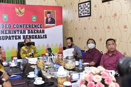 BENGKALIS-Plh. Bupati Bengkalis, Bustami HY mengikuti Video Conference bersama Plt. Sekjen Kemendagri Muhammad Hudori, Dirjen Otda Kemendagri Akmal Malik dan Irjen Kemendagri Tumpak Haposan Simanjuntak, Sabtu (13/6/2020).