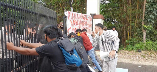 Sempat Memanas, Mahasiswa Goyang Gerbang Mapolres Kuansing