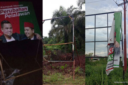 “Hari ini, sudah tiga baliho kita yang dirusak dan hilang tinggal rangka. Bahkan banyak yang dicopot,” kata Ketua Dewan Pengarah Koalisi Pelalawan Maju, H Syafrizal SE didampingi Juru Bicara, T Khairil, Kamis (10/9/2020) sore.