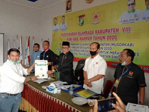 BANGKINANG – BANGKINANG – Surya Darmawan terpilih sebagai Ketua Komite Olahraga Nasional Indonesia (KONI) Kabupaten Kampar melalui Musyawarah Olahraga Kabupaten (Musorkab) Kampar VIII, Kamis (17/9/2020).