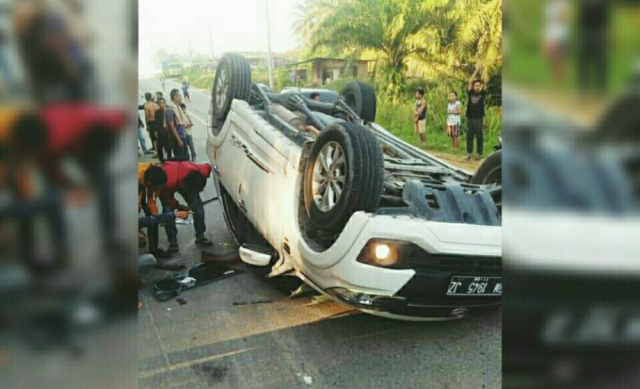 “Mobil oleng sehingga terbalik dan menabrak motor Honda Revo yang mengakibatkan pengendara mengalami luka-luka dan penumpang motor Rubiah meninggal dunia di tempat kejadian,” pungkas AKP Teguh.