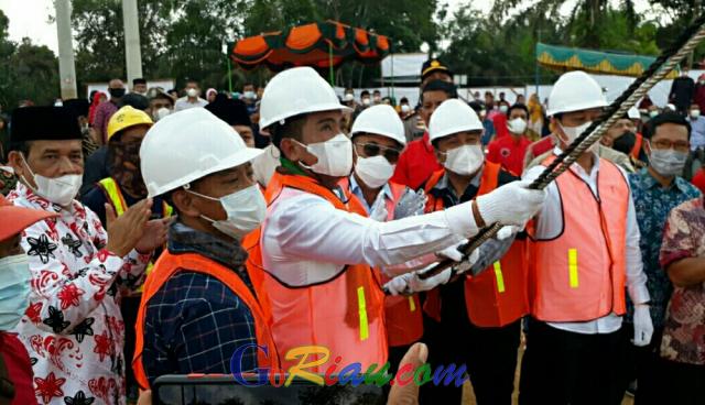 Turut mendampingi Bupati Pelalawan, Plt Kepala Dinas PUPR, Wakil Ketua I DPRD Pelalawan H Syafrizal, Ketua Komisi III DPRD Pelalawan Monang E Pasaribu, Sekretaris Komisi III Junaidi Purba. Tampak hadir, mantan Bupati Pelalawan HM Harris.